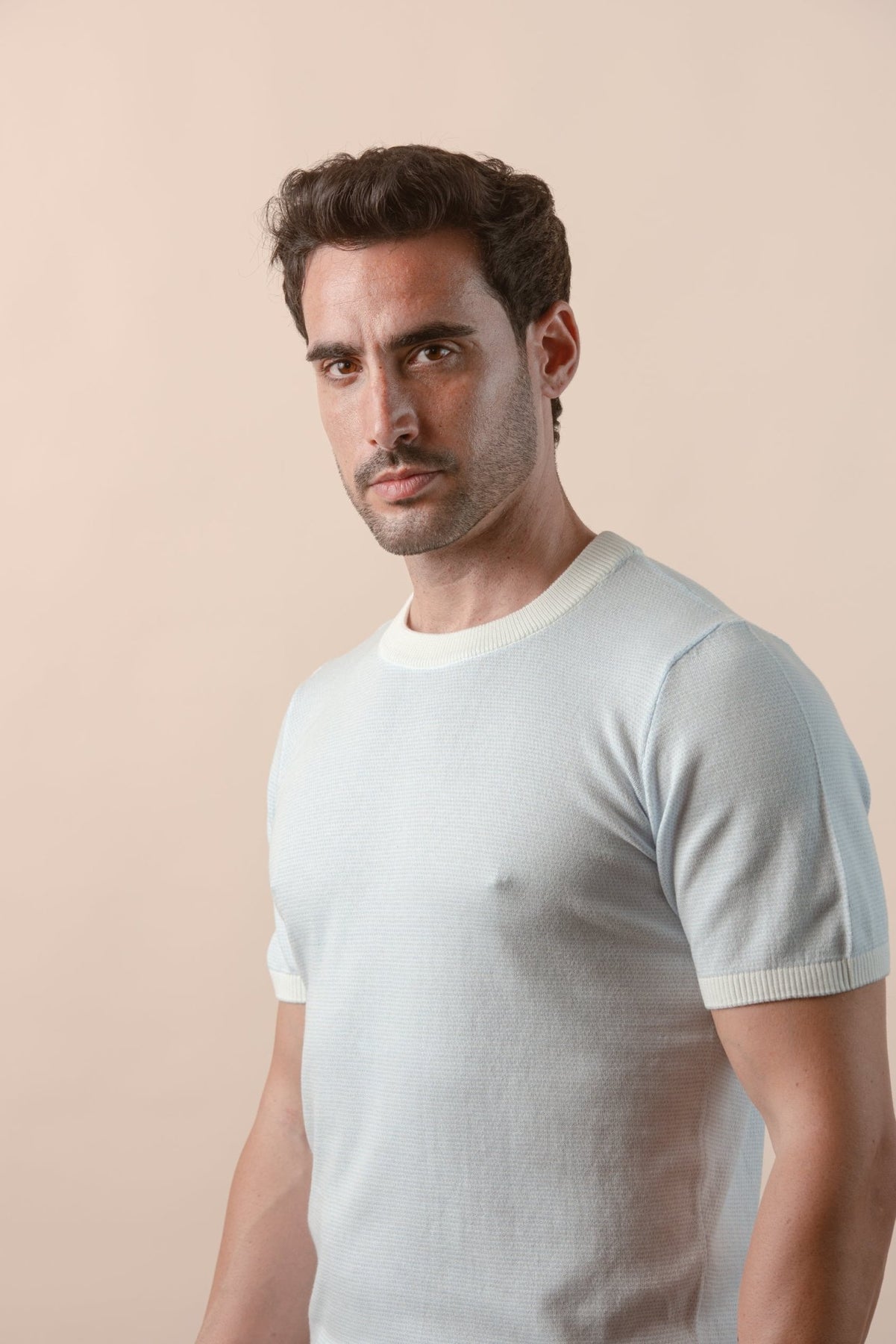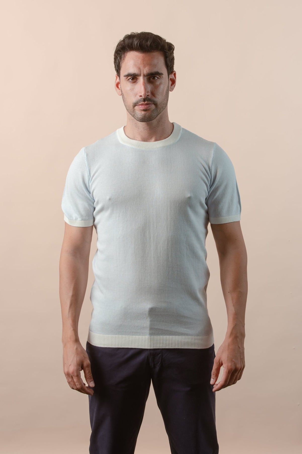 COTTON MELANGE KNITTED CREWNECK T-SHIRT