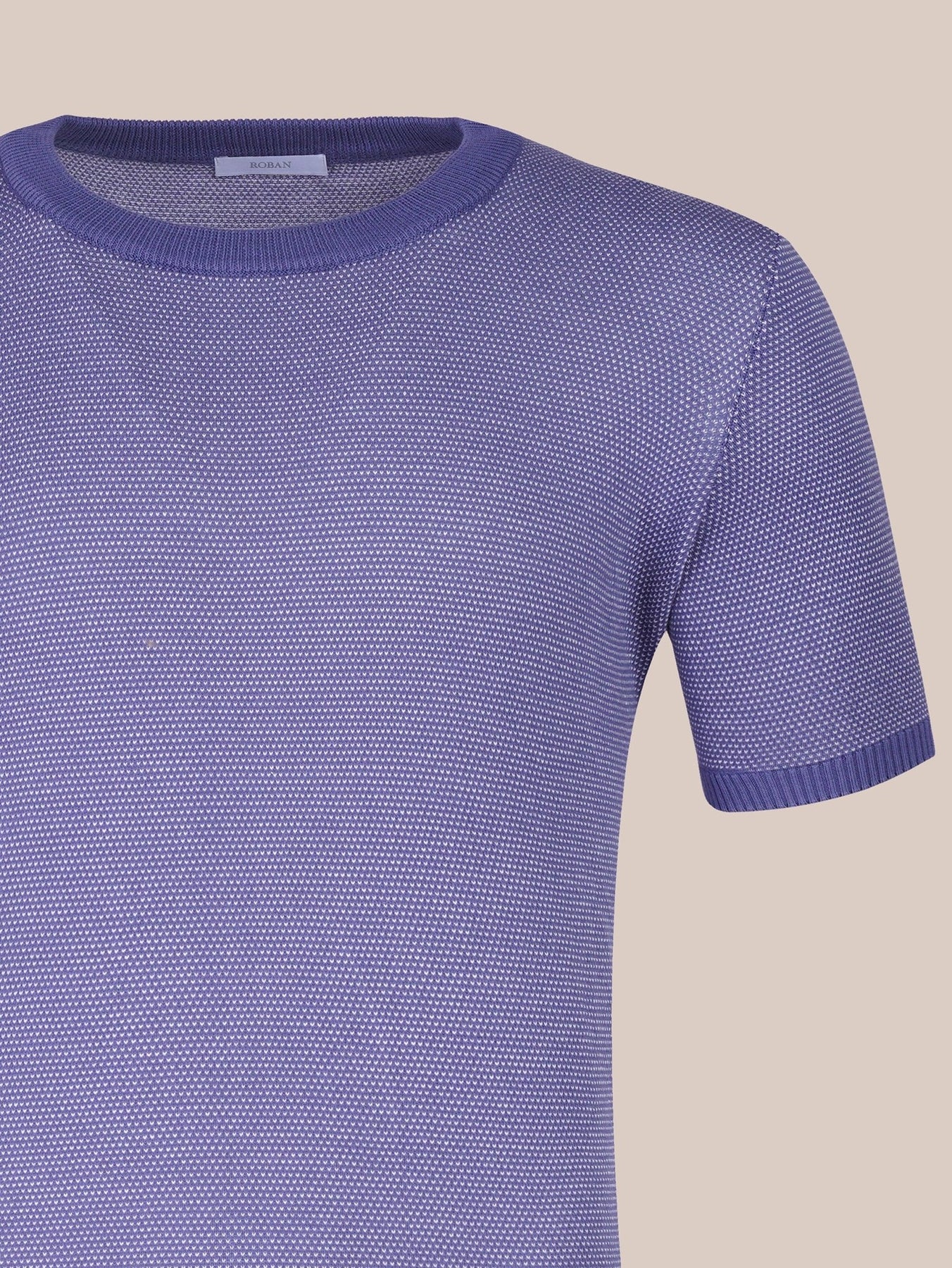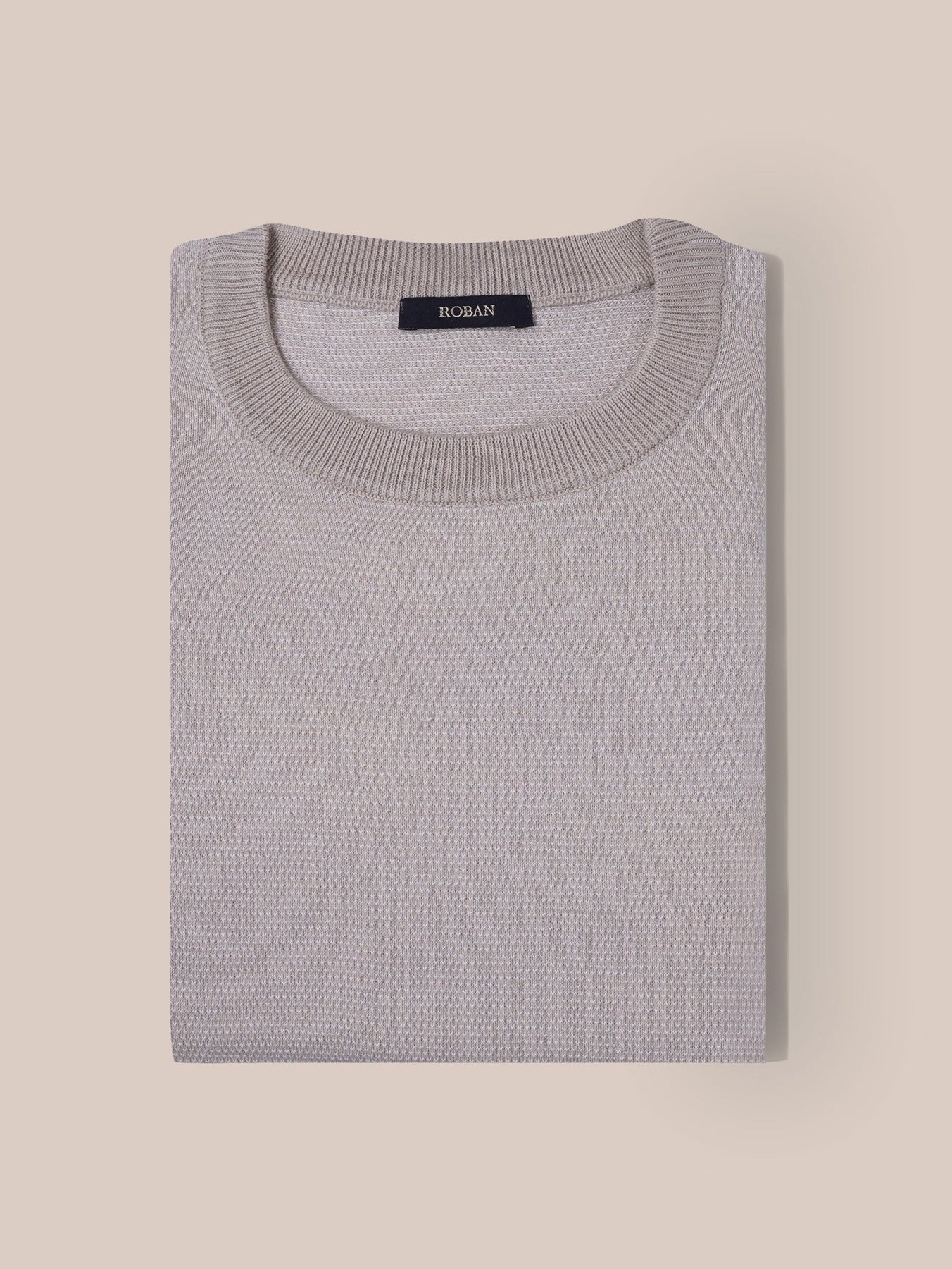 تي شيرت قطن محبوك بياقة كراوننج محبوكة من القطن الميلانج