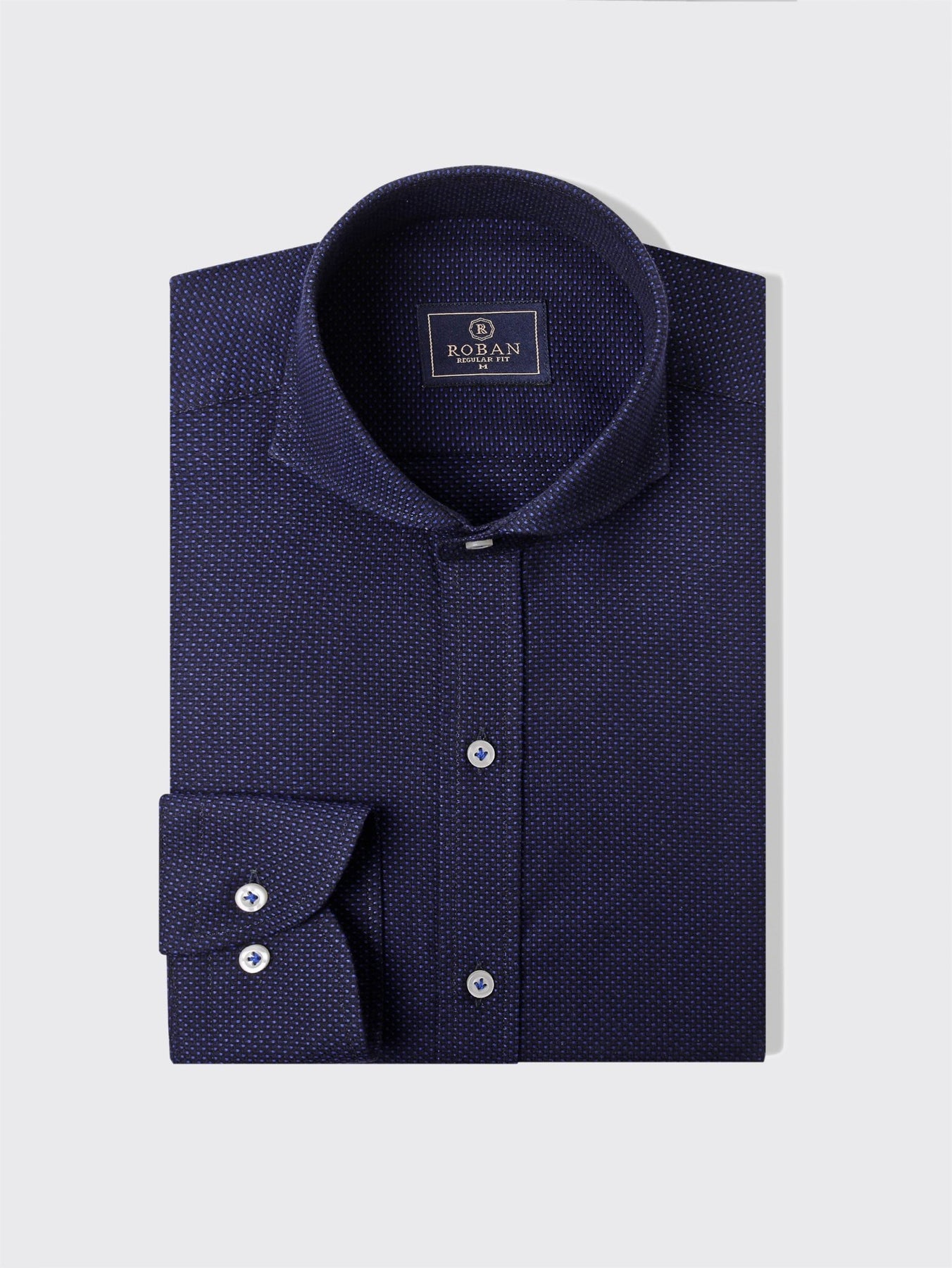 {"id":49427774439714,"title":"Navy Blue \/ M","option1":"Navy Blue","option2":"M","option3":null,"sku":"100-0134","requires_shipping":true,"taxable":true,"featured_image":{"id":58534444204322,"product_id":9575164903714,"position":1,"created_at":"2024-12-11T11:27:31+02:00","updated_at":"2025-10-04T21:51:46+03:00","alt":"Jacquard Cotton Regular Fit Shirt - Roban","width":1367,"height":2048,"src":"\/\/robaneg.com\/cdn\/shop\/files\/jacquard-cotton-regular-fit-shirt-2736901.jpg?v=1759603906","variant_ids":[49427774439714,49427774472482,49427774505250,49427774538018,49427774570786,49427774603554]},"available":true,"name":"Jacquard Cotton Regular Fit Shirt - Navy Blue \/ M","public_title":"Navy Blue \/ M","options":["Navy Blue","M"],"price":96000,"weight":50,"compare_at_price":119900,"inventory_management":"shopify","barcode":null,"featured_media":{"alt":"Jacquard Cotton Regular Fit Shirt - Roban","id":50644280443170,"position":1,"preview_image":{"aspect_ratio":0.667,"height":2048,"width":1367,"src":"\/\/robaneg.com\/cdn\/shop\/files\/jacquard-cotton-regular-fit-shirt-2736901.jpg?v=1759603906"}},"requires_selling_plan":false,"selling_plan_allocations":[]}